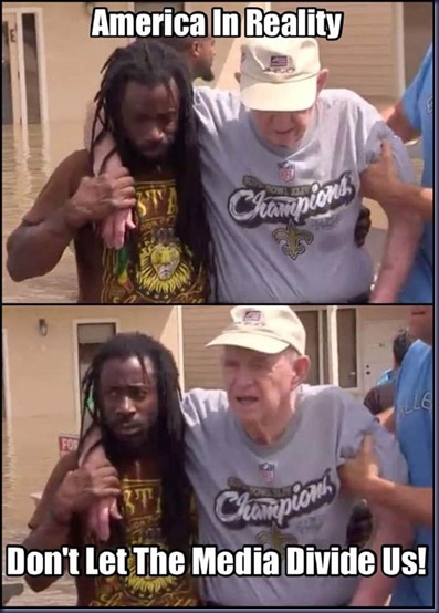 ver the last 100 years has been black vs white. Adversity, especially when lives are threatened, can unite people for the greater good of all.In a world that has many divisive issues pulling people apart, the tragic destruction of Hurricane Harvey has brought black and whites together helping each other tear down the barriers of colour and race. The following video by Alex Jones demonstrates the power of the 99% coming together to help one another.