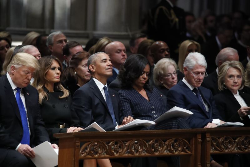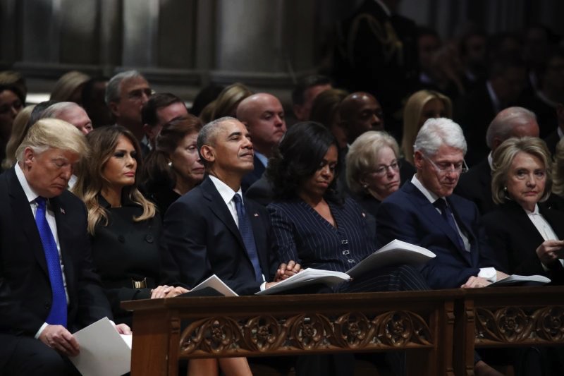 The video below highlight the activities at the Bush funeral and gives the video coverage of Bush, the Clinton’s, the Biden’s, the Obama’s and Pence’s receiving notice of something disturbing.